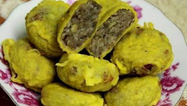 4) Golekkan pd bijan. lalu dimasukkan kedalam kuali berisi minyak 5) Pasang api dapur dan gorenglah hingga perang..