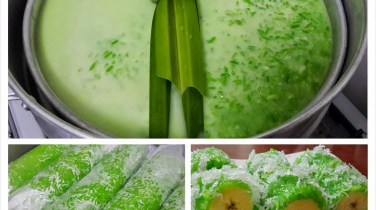 Keluarkan pulut dan ambil sedikit dan letak di atas plastik atau daun pisang dan tekan biar rata dan letakkan pisang ditengahnya. Gulung dengan kemas.